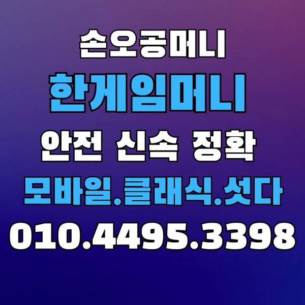 많은 분들이 #한게임머니상추천 업체를 찾지만, 검증된 곳에서 거래하는 것이 가장 안전합니다. ‘손오공머니’는 #한게임머니상검증업체로, 안전하게 거래할 수 있는 믿을 만한 곳입니다. 24시간 빠른 입금과 고객 후기에서 높은 평점을 자랑합니다. 전화번호 010-4495-3398로 언제든지 상담 가능합니다.