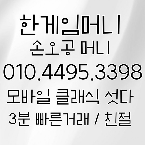 안전하고 믿을 수 있는 한게임섯다머니상 거래는 ‘손오공머니’와 함께하세요. 상담 및 문의는 010-4495-3398로 연락 주세요.