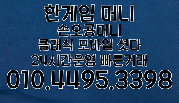 안전하고 믿을 수 있는 한게임섯다머니상 거래는 ‘손오공머니’와 함께하세요. 상담 및 문의는 010-4495-3398로 연락 주세요.